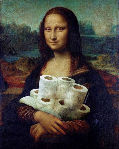 La Mona Lisa sostiene papel higiénico, un bien muy buscado durante la pandemia de 2020