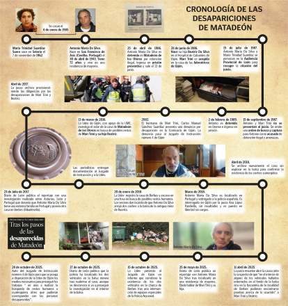 No hay rastro de ellas «no ya solo en España, sino tampoco en Suiza, Francia o Portugal», como señala el auto de la jueza asturiana Ana López Pandiella que ordena recabar todos los medios necesarios para investigar a fondo la balsa de una antigua mina de espato flúor en Berbes (Ribadesella) donde el padre y marido de las desaparecidas arrojó dos vehículos. Aquella mañana de julio del 87, María Trinidad Suárdiaz y Antonio María Da Silva habían flanqueado la puerta del Palacio de Justicia leonés para firmar la citación a un juicio que estaba señalado para el 15 de septiembre de 1987. Marido y mujer, víctima y agresor, entraron y salieron juntos, supuestamente con la niña, tras haber viajado, también juntos, desde Berbes a Oviedo y de Oviedo a León, en autobús.