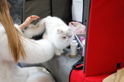 Son gatos de raza, con pedigrí, criados para ser ejemplo de la mejor calidad. La Asociación Felina Española organiza en San Andrés de Rabanedo la Exposición Internacional Canina que reune a 155 gatos de Portugal y España de 21 razas diferentes. Los criadores muestran los mejores ejemplares que, además, tienen un carácter especial, más sociable. Los hay que cuestan desde 700 euros hasta los 1.500. Algunos, los destinados a los criadores, pueden alcanzar los 3.000 euros. La exposición y la competición, con un jurado procedente de Polonia, Italia, Bielorrusia y Suiza, continua hoy y mañana en el Pabellón Camino de Santiago de San Andrés del Rabanedo.