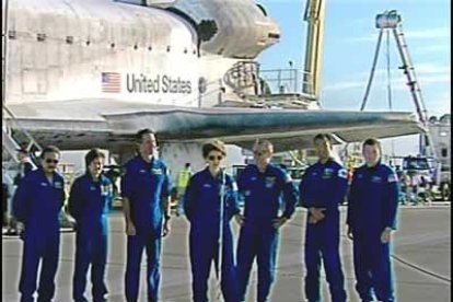 El transbordador, con sus siete astronautas a bordo, llegaba a la base aérea de Edwards.