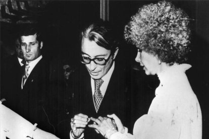 Miguel Bosé, hijo del torero Luis Miguel Dominguín, y la duquesa de Alba, Cayetana Fitz-James Stewart, durante un homenaje a Luis Miguel Dominguín en Sevilla. JULIO MUÑOZ | EFE