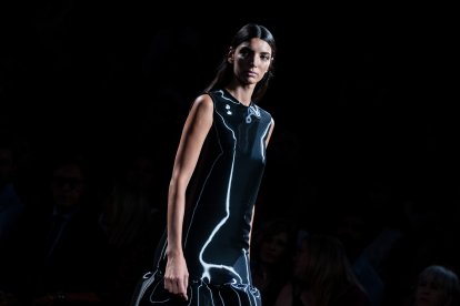 Piezas cómodas que dan seguridad a quién las luce, en las que no faltan chaquetas con patrones asimétricos; faldas tubo acompañadas de cuerpos semientallados o una confección sastre precisa que completa con un abrigo largo en jacquard beige. EFE