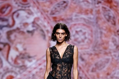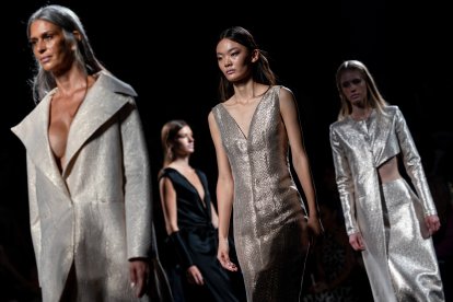Las modelos han ido desfilando por la pasarela con diseños inspirados en Oriente -una constante en sus diseños-, además de en el Art Nouveau que deja su estela en referencias orgánicas y ornamentación vegetal y también recurre a la imágenes de la antigua Grecia, un triángulo desde donde las piezas funden lo urbano con el lujo artesanal.