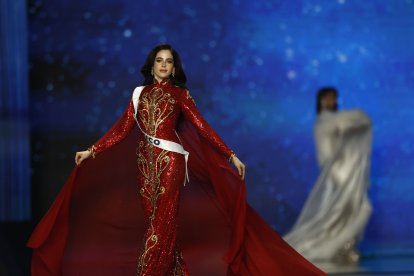 Su deslumbrante porte, con un vestido de gala rojo que se ha convertido en el "color de la suerte" para las reinas mexicanas, y su firmeza en el discurso la catapultaron a la victoria, dejando a Miss Tailandia como primera finalista.