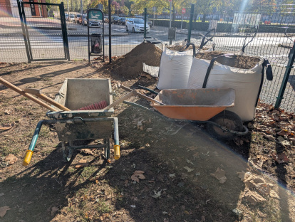 Los usuarios hicieron una colecta y recaudaron dinero para comprar tierra vegetal para tapar todos los agujeros del pipicán, profundos o superficiales, pequeños o extensos, arena para los socavones más grandes y muelles para asegurar que las puertas se cerraran siempre. Tareas que debería haber hecho el Ayuntamiento de León. En el registro municipal se notificó que los usuarios iban a arreglar la ZEC después de esperar durante meses una respuesta del concejal.